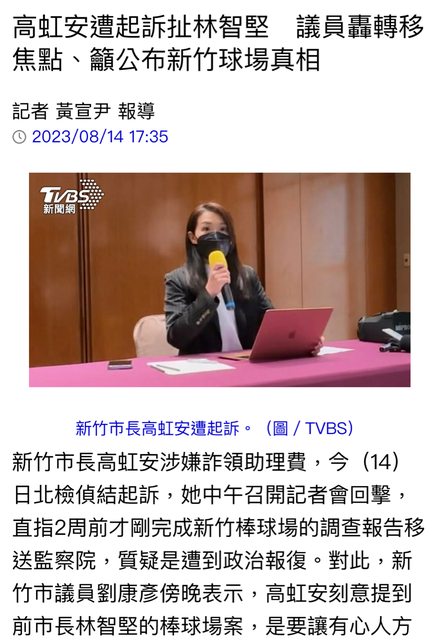 推 KevinLow : 棒球場 跟新竹市政有關 助理費案不是市長任期的事情 08/14 20:45
