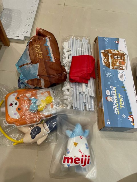 1.買奶粉贈送的玩具:背包水槍、帳篷、安撫巾