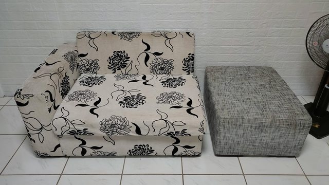 應該是買房送的那種,不是整組拿到的所以花色不同,扶手有點髒髒的痕跡