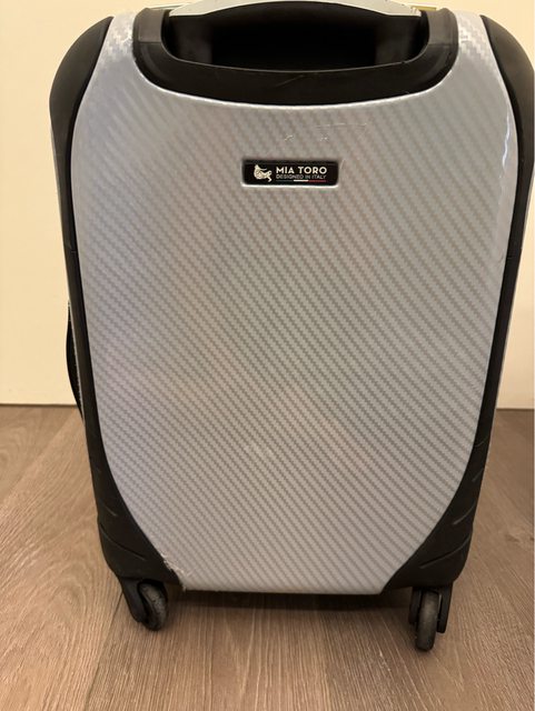 堪用登機箱,有使用痕跡,輪子有脫皮,走起來有聲音,但還算能正常地走。