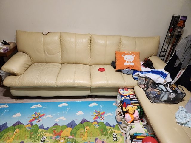 1. 沙發底布破損,其餘有使用痕跡但可正常使用