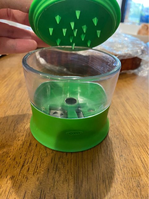 物品項目:廚房用具、礦泉水桶、靠背折疊椅 1)圓型木砧板(厚度3.5公分、直徑25公分)