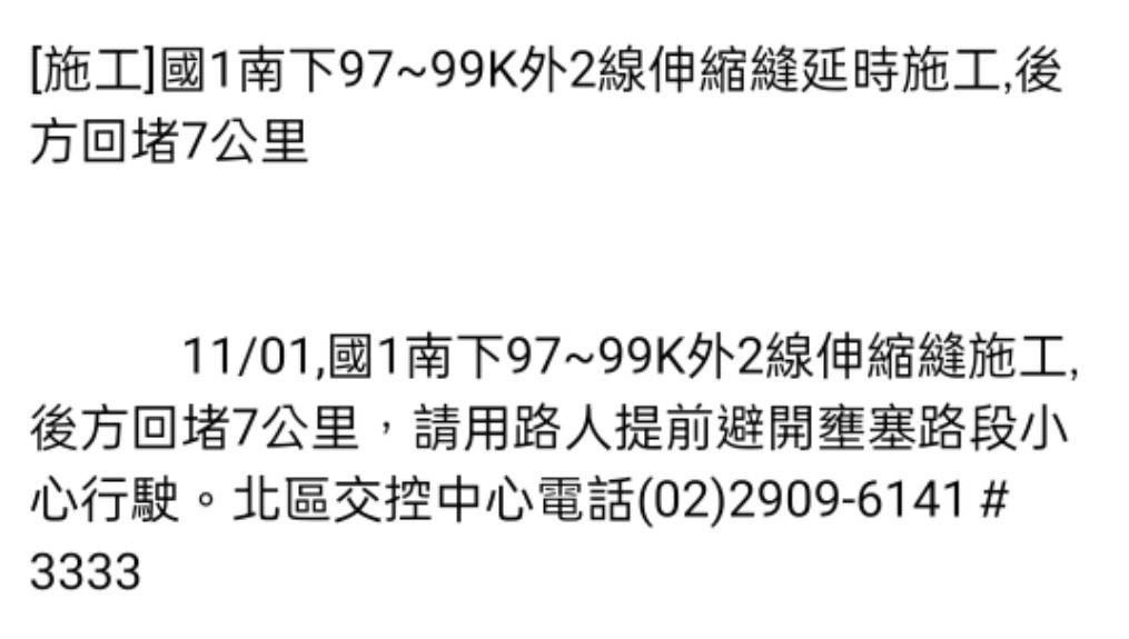 推 mraznice : 今天被高公局偷走3個小時 11/01 11:40