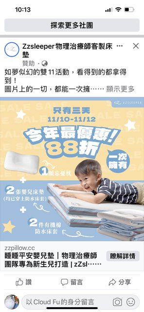 11/10-12購買兩張嬰兒床墊活動