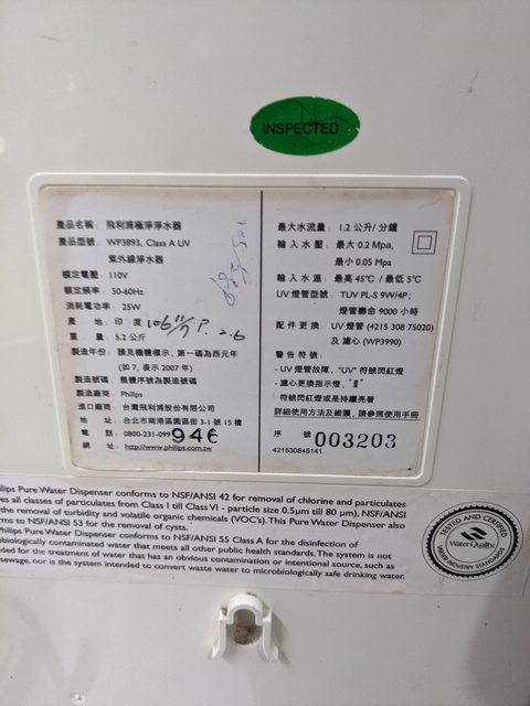 物品項目:(1)Philips 淨水器