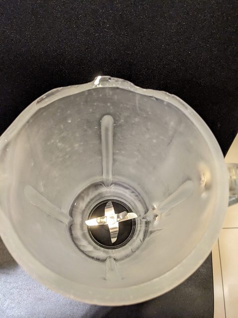 (2)果汁機 功能正常 玻璃杯緣有破損研磨過 安全開關 失效