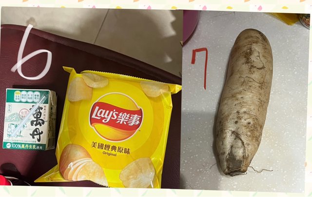 芋頭大概3個月前友人贈送,拿到後一直冰在冷凍庫未拆封過,其中幾塊疑似表皮沒有削很