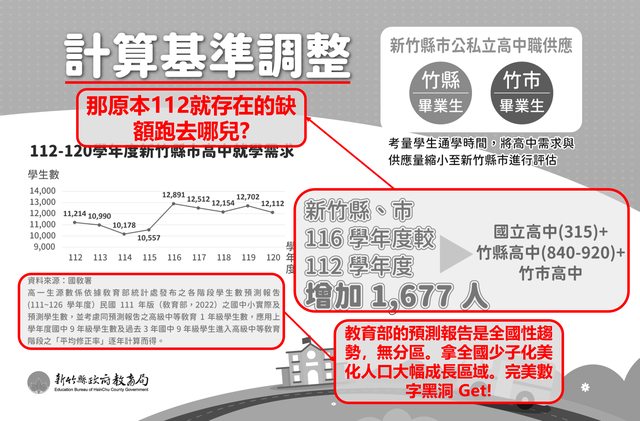 : 因應在地學生人數不斷成長,預計到116學年度來到高峰,在新竹縣市預計要增加1677
