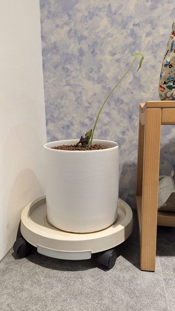一個盆栽裡面是龜背芋(葉子都枯了只剩一小個)外加一個花盆底盤