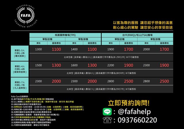 標題[優惠] Fafa Cars-機場接送鄉民優惠