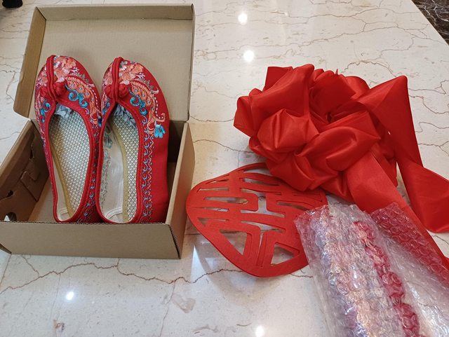 物品項目:繡花鞋24號+拍照用彩球,糖葫蘆,囍字*2