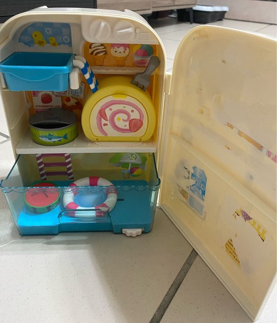 兒童玩具,小冰箱,貼紙有些被撕掉了,但不影響孩子玩樂