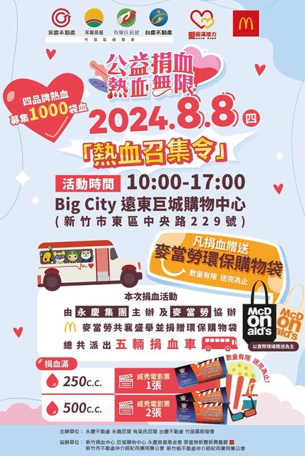 標題[捐血] 8/8 新竹市巨城捐血送電影票/環保袋