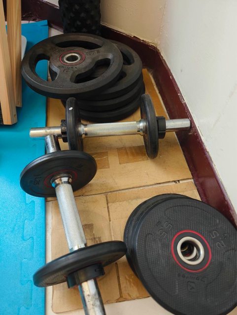1. 迪卡儂 35cm 槓鈴桿 x2 1.25kg/2.5kg/5kg 槓片各x4