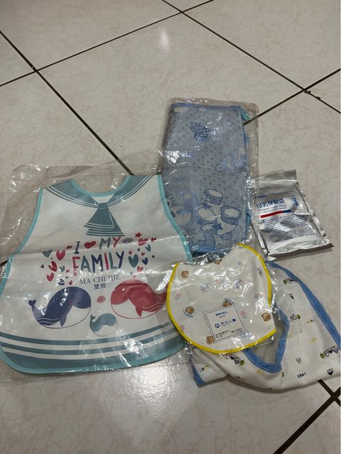 3.圍兜、推車涼墊(全新)、母乳保存袋