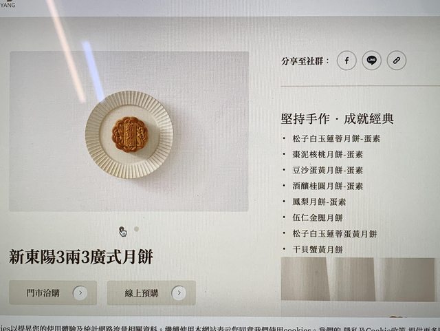 物品項目:新東陽廣式月餅6顆(一盒)、文旦三顆