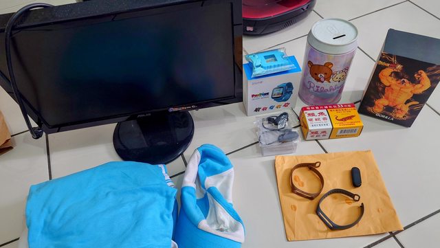 物品項目:小米手環4 存錢筒 電蚊香片 兒童手錶 七龍珠金剛煙灰缸 電腦螢幕 民富體育