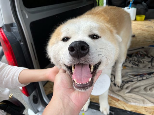 ,蠻多秋田犬是繫在車上,讓遊客欣賞及互動。