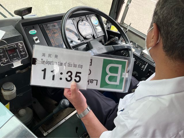 後,司機會出示等一下的發車時間(11:35)。