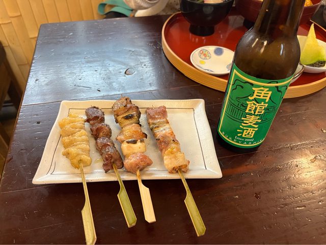 地雞親子丼(1,700円)及串燒都好吃,配啤酒也對味,就是貴了一點點(與當地其他店