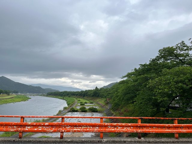 四處逛逛,悠閒的氛圍,連秋田犬也靜靜趴著。河邊的風景,想必春、秋季到訪一定更美