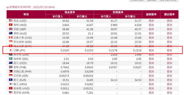 推 laventidus : 我有朋友上周最低點買了一兩百萬台幣的日幣,只能 07/10 14:20