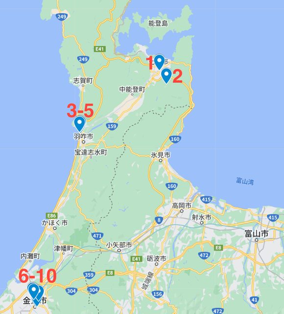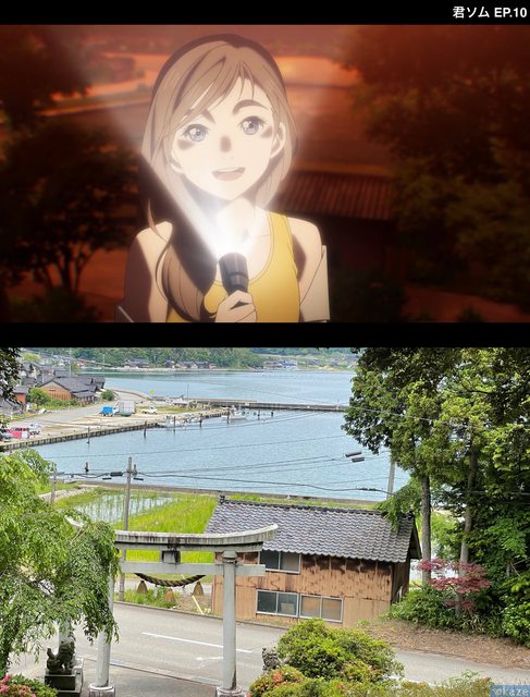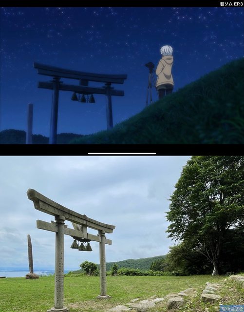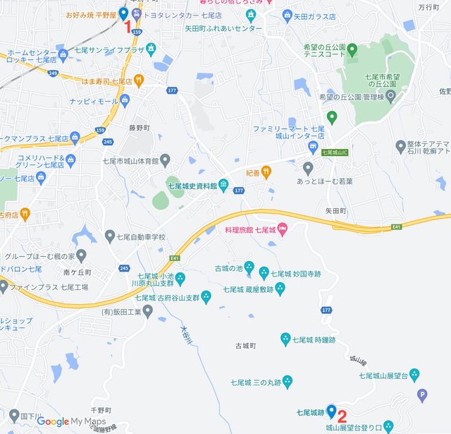 有幾張沒辦法完美還原 主要是相對位置的問題 不過這裡真的蠻漂亮的 推薦來走走 雖然很想晚上來拍 但實在是沒有勇氣深夜一個人來這種地方 說到來這邊,順便聊聊交通問題 基本上在七尾駅周邊巡禮都用步行即可 但到這裡是唯一有租腳踏車的 在車站的旅客中心就能租 我選了500円普通的車 工作人員還跟我說 如果是要去七尾城的話建議租電動腳踏車 之前有很多用一般款式的後來都上不去 但想想要多付500円 為了省錢加上迷之自信還是硬著頭皮不升級 結果就是半路便放棄用騎的 下來牽車上山 不過這樣的經驗也很多了 印象最深刻的一次 是在佐賀巡禮要上鬼の鼻山結果因為太渴快撐不住 中間還數度躺在山路休息才成功登頂 回到七尾城 來點沿途隨手拍吧