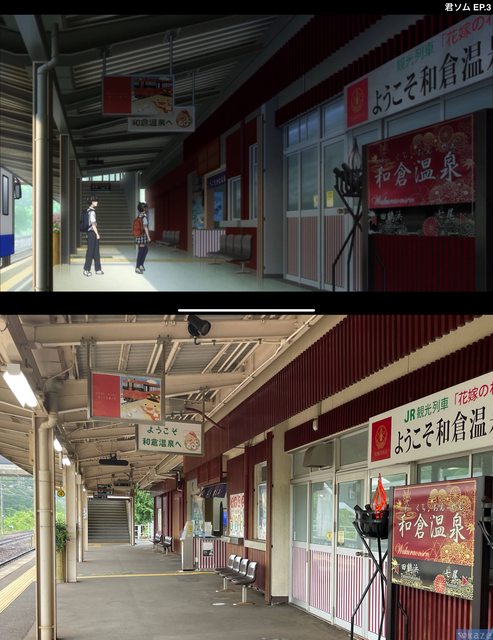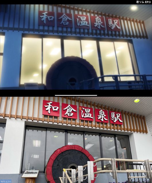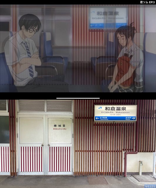 出現無數次的超重要場景 因此也拍了一堆 但能發現店舖經過改裝 雖然還留有舊時的氛圍 但整體外觀已經變化許多 算是相當可惜 然後老樣子為了不打擾營業 我都會盡量在開店前或是人少時來拍 這次來的時候還在開店前 所以也就沒有進入店內了 不過幸好有拍到立牌XD 話說雖然在前一個點說下了大雨 但在這邊還只是陰天 是因為我的行程其實是先去接下來會講的點 然後搭車到田鶴浜駅步行約20分鐘到這 回去時再走了約40分鐘到和倉温泉駅 其實應該只需要花一半的時間 但因為路上開始下雨 而且我又各種繞路想找聖地(雖然結果沒找到 所以拖了些時間 3.西岸駅