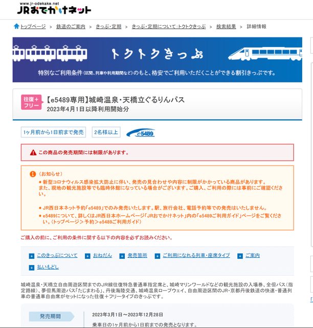 : 請教各位高手,因為八月安排去天橋立的時間剛好碰到盆休,所以就只好在jr西上買了比