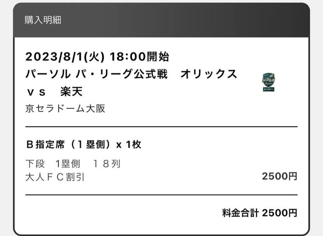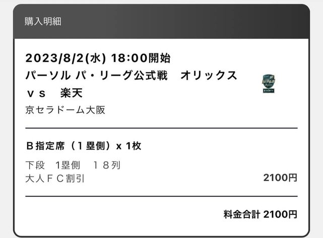 8/3(四)歐力士vs.楽天 @京瓷巨蛋
