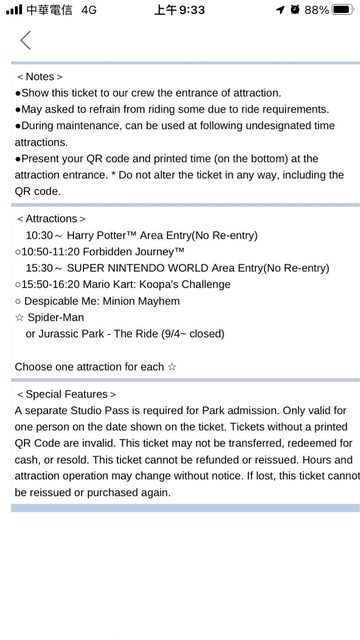 標題[讓售] 2張9/14 大阪環球影城-快通4