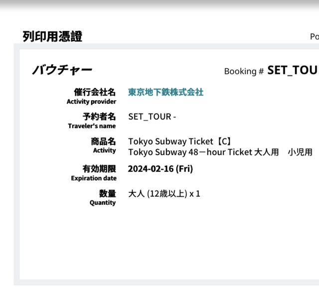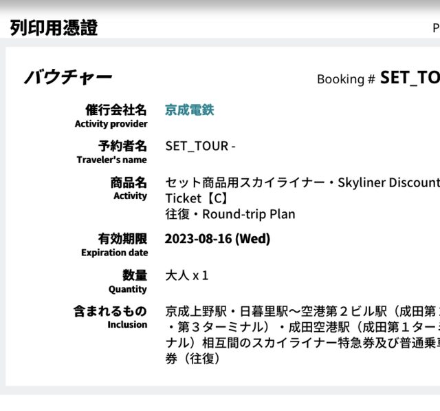 圖片僅提供其中一組的範例,匯款後會提供完整兩組憑證,持憑證至成田機場/地鐵站兌