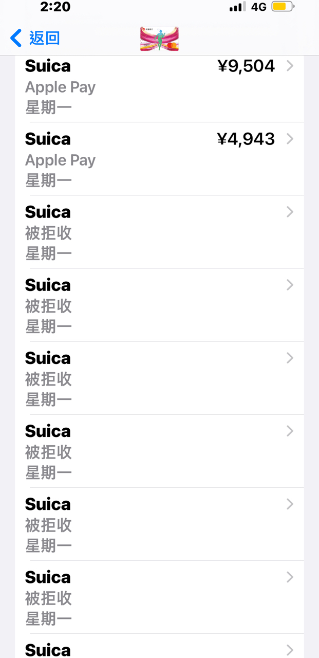 → qwe711334 : 這是信用卡被盜用加到ApplePay。根本不是suica的問 08/03 08:46