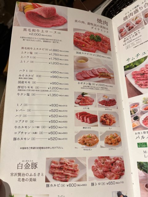 跟所有盛岡冷麵店一樣,這裡也把燒肉跟冷麵做搭配。菜單的組成就是主食和燒肉(牛或