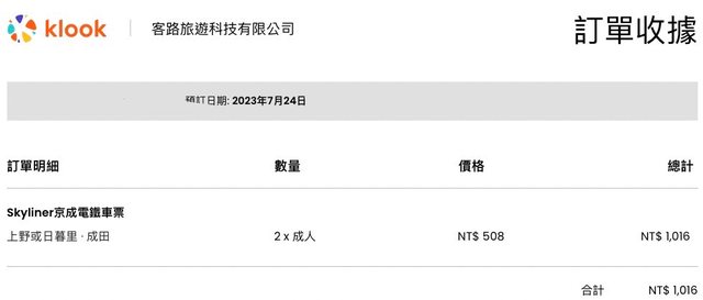 1. 讓售品項: Skyliner京成電鐵車票2張(上野至成田空港 單程)