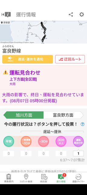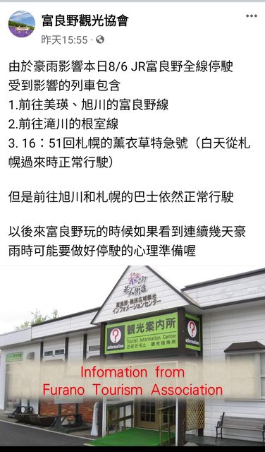 美瑛段也不行,上富良野官方fb才知昨天就因為豪雨停駛。