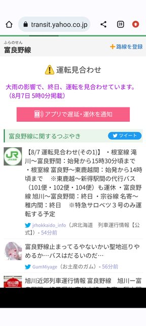 標題[情報] JR富良野段因豪雨中斷