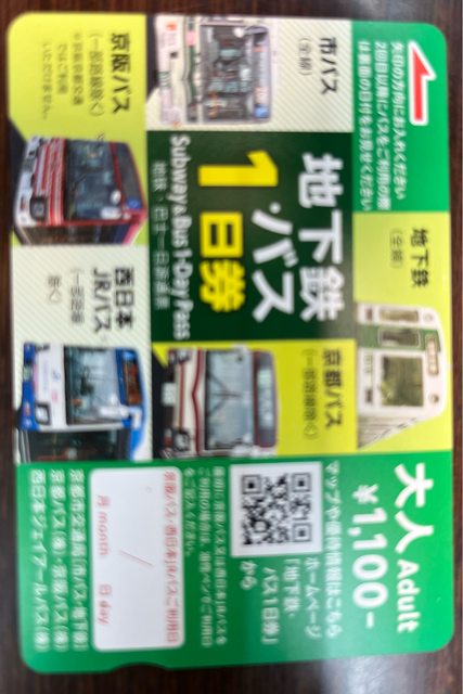 京都巴士地鐵一日券 一張