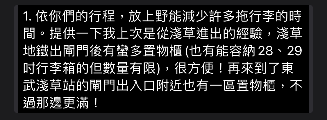 1.去日光的兩天只想帶簡單的換洗衣物,不確定要將大部分的行李寄放在