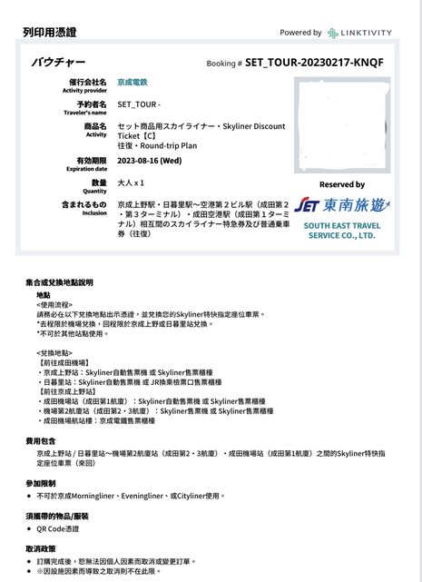 當初買的是東南旅行社的京成電鐵來回+地鐵48小時乘車券套票,兩組套票共1300。