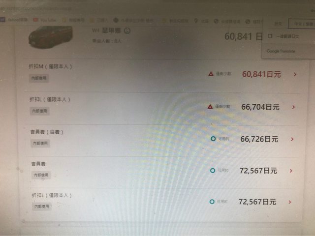 請問各位大大,在日本租車網站上打上需求後,同樣一款車有五種價格,分別有折扣M(僅