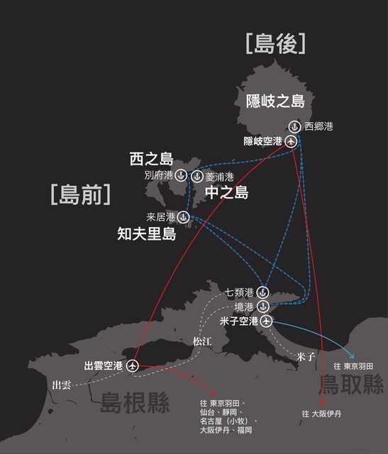 )”。從七類港、境港均有航班,僅需1小時半以內就可抵達隱岐,可省下不少時間。但