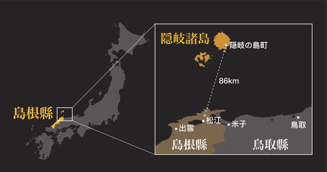 。最大的聚落隱岐之島町,距離島根縣廳所在地松江市直線距離大約86公里,差不多是台