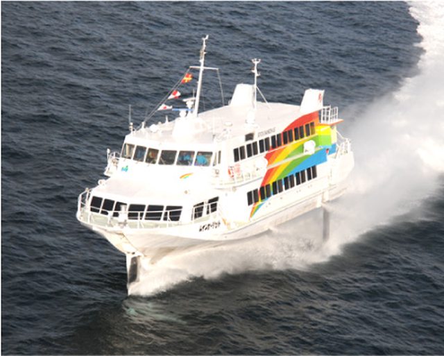 想更快抵達隱岐,可以選乘隱岐汽船經營的快速船”Rainbow Jet (レインボージェット