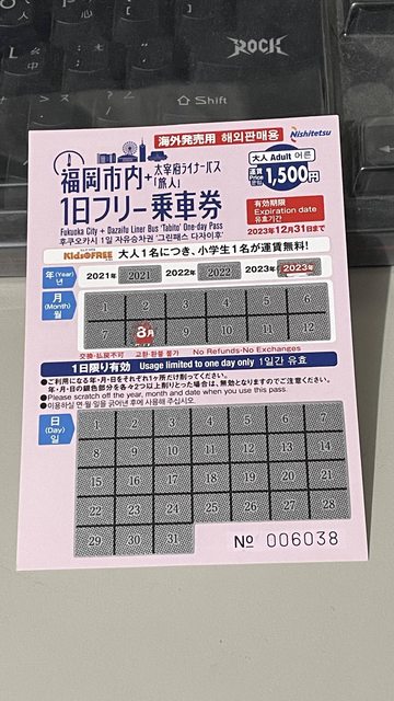 贈送內容:福岡市內公車一日券(含太宰府旅人巴士)一張