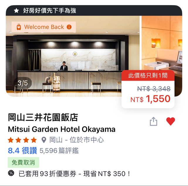 推 marosky : 推3,住過覺得不錯,當初在trip.com訂,刷visa還打9 08/15 19:12