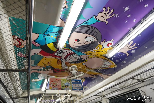 列車天花板還有主角們一起張開雙臂嚇人的彩繪,一定要抬頭看看啊。