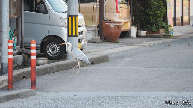 有地獄來的黑貓,當然就要有神派來的使者。這隻灰鷺,就這樣跟一旁的民宅討魚吃,吃