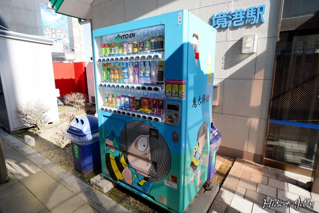 車站外的鬼太郎販賣機,新穎的塗裝看起來飲料都變好喝了。