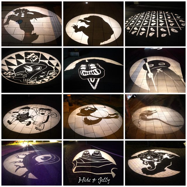 利用光影,把妖怪們投影在街道上,有時伴隨著燈光閃耀,還會從模糊到清晰,這投影真